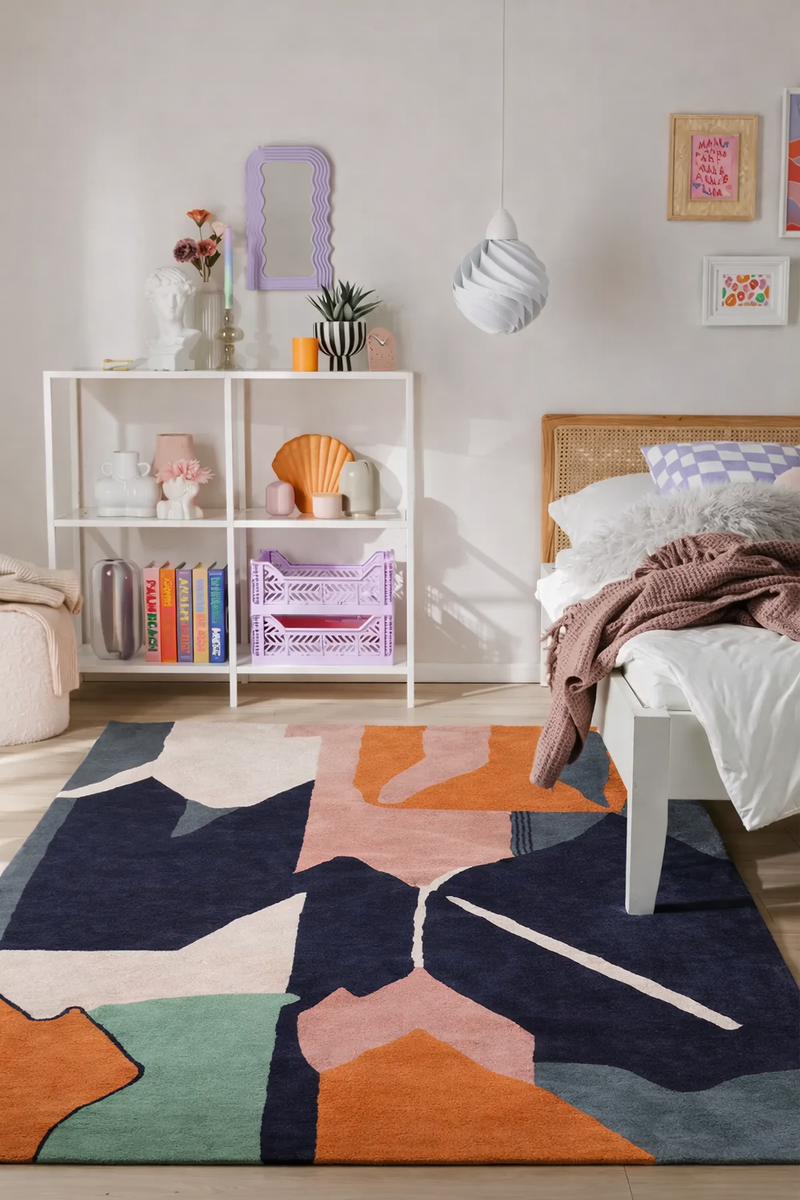 Durch seine moderne, zeitlose Formsprache fügt sich der Teppich mühelos in verschiedene Wohnkonzepte ein – ob in offenen Loft-Räumen, eleganten Wohnzimmern oder kreativen Arbeitsbereichen. Dank der hochwertigen Schurwolle überzeugt er nicht nur optisch, sondern auch durch Strapazierfähigkeit, Komfort und ein angenehmes Raumgefühl.