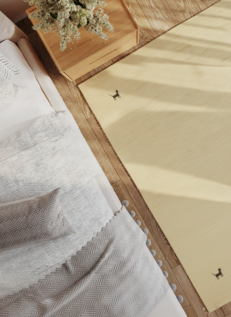 Den handspunna ullen ger mattan en unik, lätt strukturerad yta med ett subtilt glans – ett tecken på äkta hantverk. Samtidigt är materialet temperaturreglerande, smutsavvisande och skapar ett behagligt inomhusklimat.