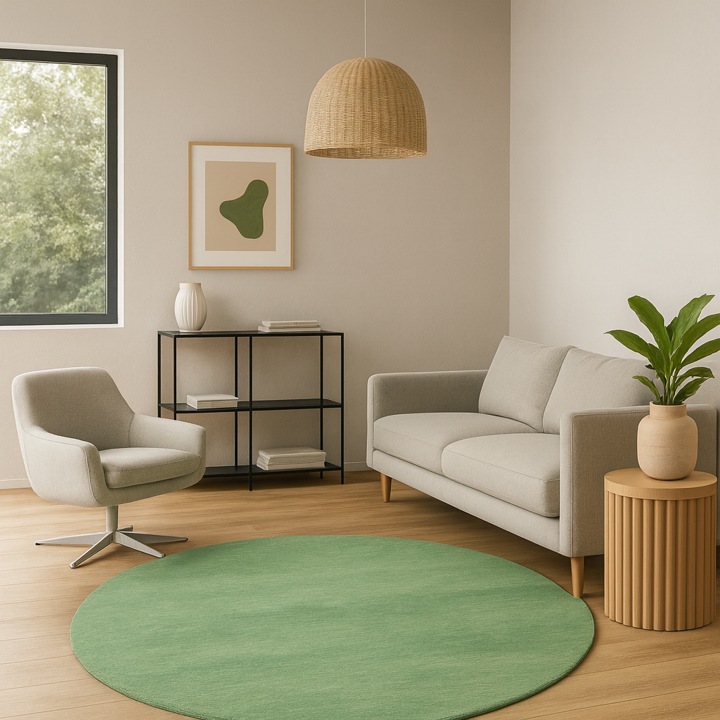 Den handspunna ullen ger mattan en unik, lätt strukturerad yta med ett subtilt glans – ett tecken på äkta hantverk. Samtidigt är materialet temperaturreglerande, smutsavvisande och skapar ett behagligt inomhusklimat.