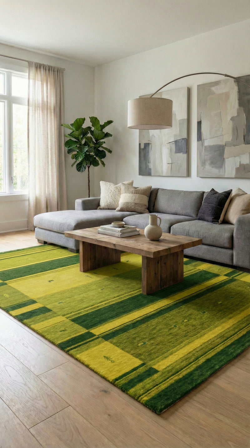 Upptäck den handvävda Gabbeh-mattan Indus "Dubai" tillverkad av 100% ny ull. Denna rektangulära matta finns i de eleganta färgerna grå, grön och rost och ger ditt hem en lyxig och mysig atmosfär. Den högkvalitativa finishen och den mjuka strukturen gör "Dubai" till det perfekta valet för vardagsrummet, sovrummet eller hallen. Njut av naturlig elegans och komfort med denna unika matta som perfekt kombinerar tradition och tidlös design.