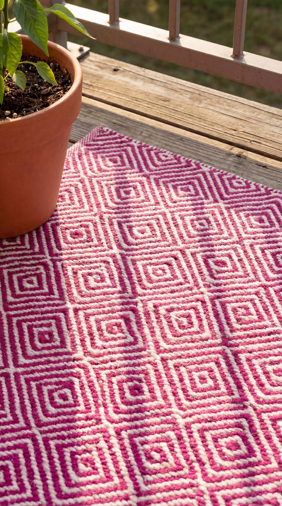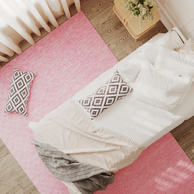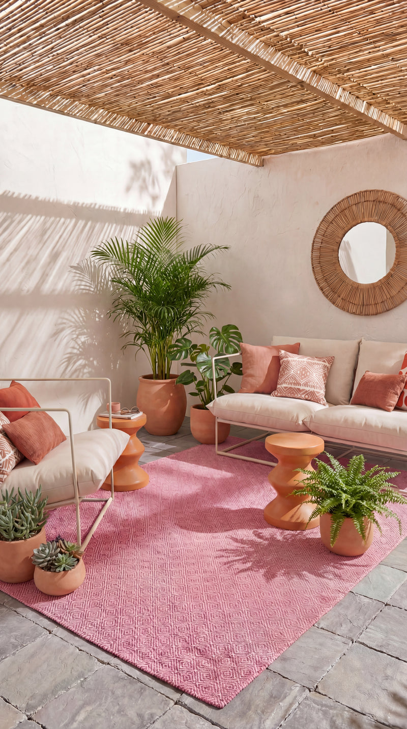 Inomhus- och utomhusmattan "Alef" finns i de ljusa färgerna rosa, blått, turkost och gult och kan fås som löpare eller i rektangulär form. Den är handvävd av återvunnen PET och är därför ett miljövänligt och stilfullt alternativ för alla vardagsrum. Oavsett om det är i köket, badrummet, på uteplatsen eller balkongen kännetecknas "Alef" av sin mångsidighet och hållbarhet. Mattan är smutsavvisande, luddfri och särskilt lättskött tack vare sina mjuka syntetfibrer, vilket gör den till den perfekta följeslagaren för husdjursägare. Den ger alla rum, både inomhus och utomhus, en behaglig och inbjudande atmosfär. Upptäck fördelarna med "Alef" och få färg och komfort i ditt hem.