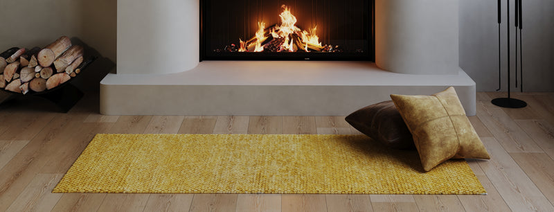 Den handspunna ullen ger mattan en unik, lätt strukturerad yta med ett subtilt glans – ett tecken på äkta hantverk. Samtidigt är materialet temperaturreglerande, smutsavvisande och skapar ett behagligt inomhusklimat.