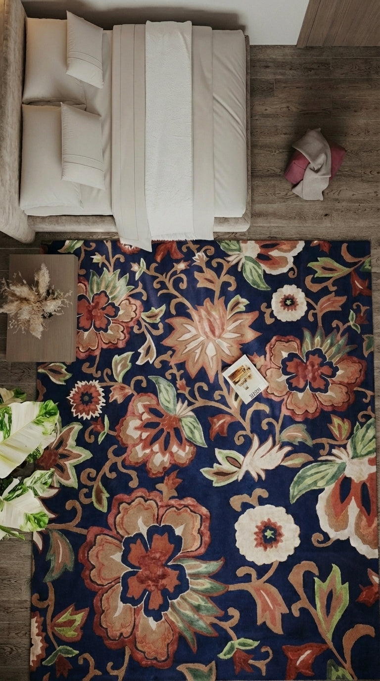 Das Design von FloralThreads lebt von detailreich ausgearbeiteten floralen Strukturen, die sich in eleganten Schwüngen über die Teppichfläche entfalten. Die kunstvollen Blüten- und Blattmotive wirken lebendig, zugleich harmonisch und verleihen dem Teppich eine dekorative, aber dennoch ausgewogene Präsenz. Die Komposition erinnert an klassische Naturillustrationen, interpretiert sie jedoch in zeitgemäßer Form, sodass der Teppich sowohl in moderne als auch in traditionelle Interieurs passt.